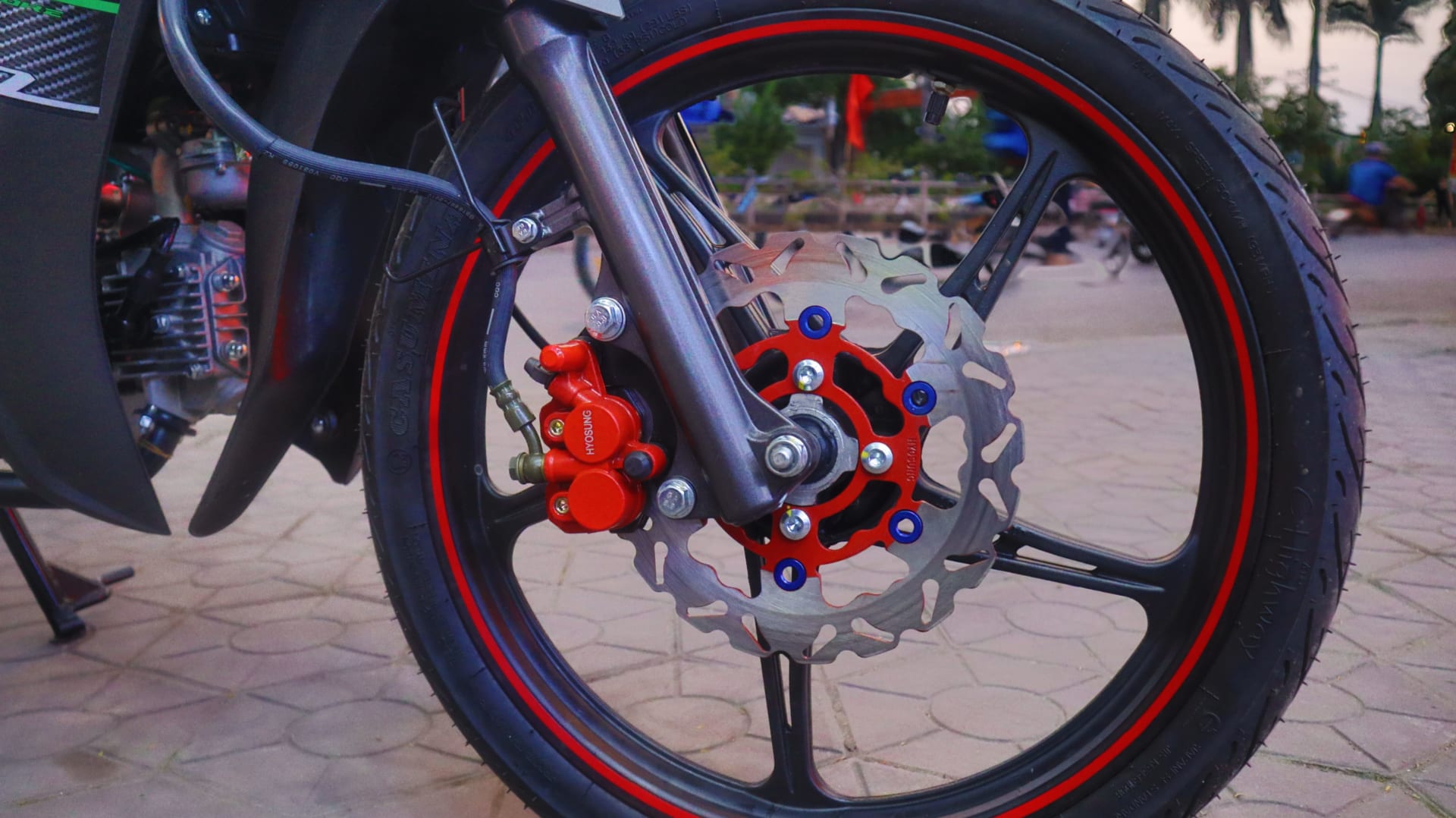 Kết hợp với vành đúc 5 chấu kép cực cá tính và cứng cáp với kích thước 18 inch, được bao bọc bởi bộ lốp DRC có kích thước lớn độ rãnh sâu cho khả năng bám đường tốt, giúp xe di chuyển an toàn trên mọi nẻo đường. Tại trung tâm bánh xe trước trang bị một phanh đĩa to cho bạn làm chủ tốc độ tốt hơn và bánh sau sử dụng là phanh cơ. Bộ phanh này hoạt động rất tốt và nhạy cho xe dừng lại hẳn khi phanh gấp.