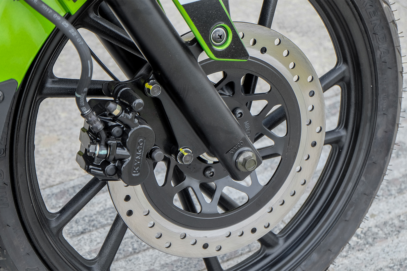 Xe có phanh đĩa cho bánh trước và phanh tang trống cho bánh sau, vành 17 inch.