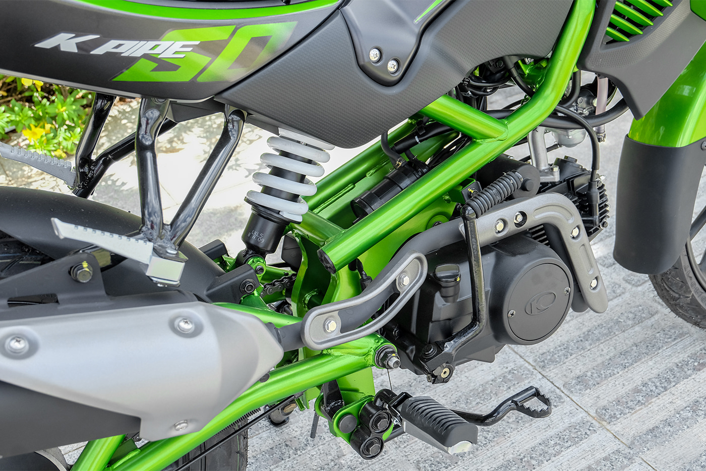 Thừa hưởng thiết kế mạnh mẽ và đặc sắc từ đàn anh K-Pipe 125, thế nhưng K-Pipe 50 không được trang bị bộ côn tay mà thay vào đó là số tự động.