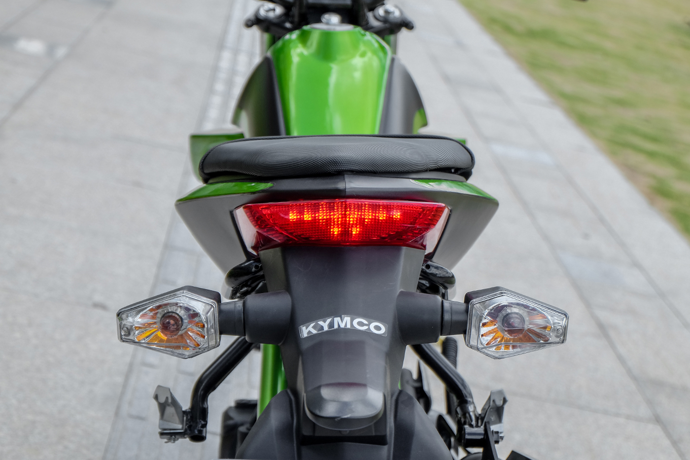 Bình xăng nhô cao dung tích 4,5 lít, đồng hồ tốc độ LCD và đèn pha phân tầng tuy nhiên trông hơi thô. Tay lái bên phải có nút tắt động cơ như trên các mẫu môtô phân khối lớn, vô cùng ấn tượng. Phần yên xe bọc da và được thiết kế cao.