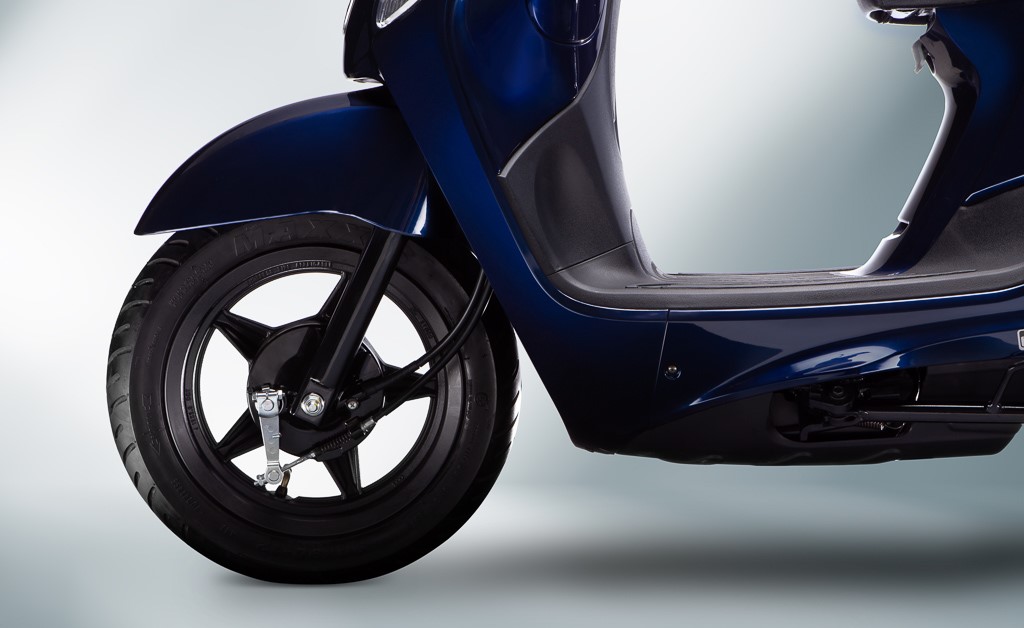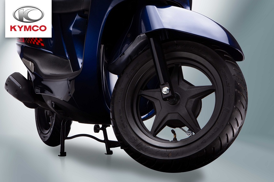 Mặt khác, Kymco Like sử dụng cặp vành đúc hợp kim nguyên khối hình ngôi sao 5 chấu hoặc vành đúc 5 chấu thường được sơn đen nhám hoặc sơn màu bạc sang trọng tùy từng phiên bản khác nhau đem lại sự ổn định khi di chuyển và mạnh mẽ cho kiểu dáng xe. Sàn để chân rộng rãi để người dùng lên xuống xe thoải mái mà không bị vướng víu, mặt sàn được làm nhám chống trơn trượt, yên xe được thiết kế liền nhưng phân tần cao thấp rõ ràng giúp người lái và người ngồi sau có không gian riêng thoải mái. Đặc biệt xe có gác chân riêng cho người ngồi sau chứ không để chung với người ngồi trước như một vài dòng xe máy 50cc khác cùng phân khúc.