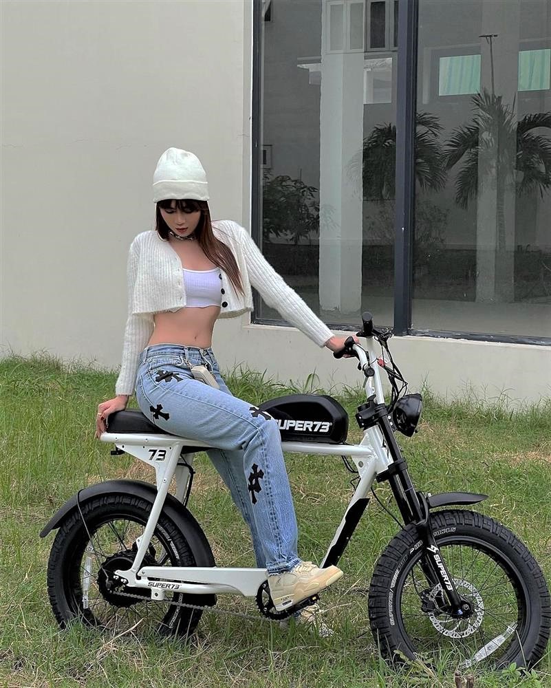 Trên trang cá nhân, Ngọc Trinh chia sẻ loạt ảnh khoe dáng bên xe đạp điện mới hạng sang này. Không khó để nhận ra chiếc xe này dạo gần đang rất hot. Mẫu xe đạp điện này có tên S2 của công ty Super73, có trụ sở tại California, Mỹ.