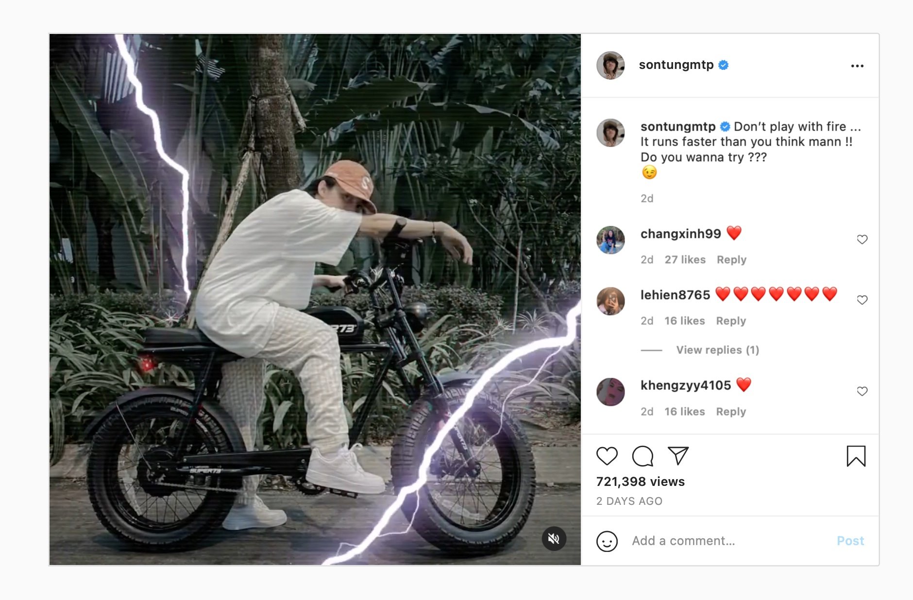 Cách đây vài tuần, ca sĩ Sơn Tùng cũng đã xuất hiện cùng chiếc xe đạp điện đến từ Mỹ này trên Instagram cá nhân.