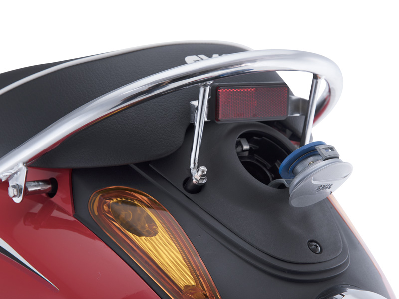 Nắp xăng được thiết kế ở bên ngoài, phía sau yên xe. Thiết kế của SYM Elite 50 rất tiện lợi cho việc đổ xăng mà không phải mở nắp yên ra, thêm tiện lợi cho người dùng.