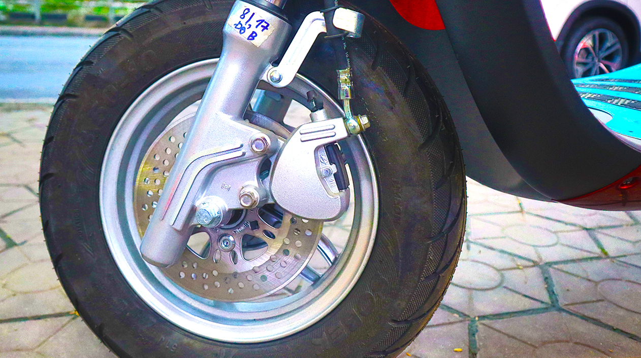 Xe trang bị phanh đĩa bánh trước hoạt động chắc chắn động cơ khỏe mạnh công suất 1000W, chạy được quãng đường 80 - 90km trong một lần sạc nhờ vào 5 bình acquy 20A.