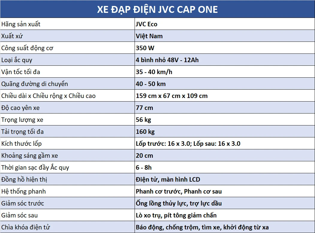 THÔNG SỐ KỸ THUẬT Xe đạp điện JVC Cap One