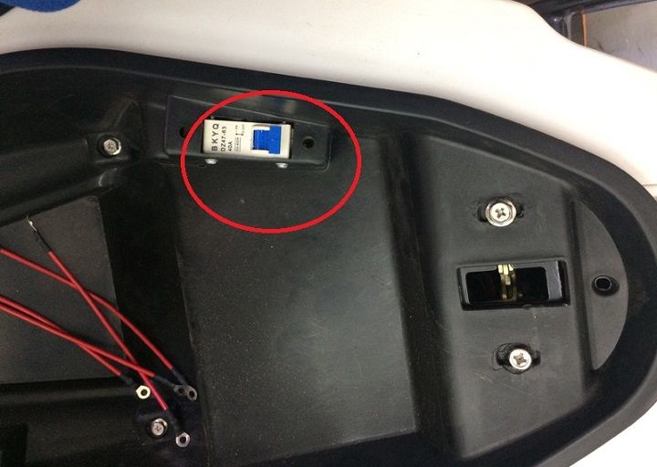 Cách khắc phục: Tìm vị trí Aptomat tàu điện (thường nằm ở trong cốp xe) với dạng hình công tắc ON/OFF. Bạn chỉ cần bật Aptomat về trạng thái ON để xe máy điện được cấp điện trở lại.