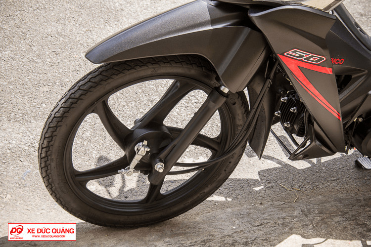 Cùng với đó, Visar 50cc có mâm đúc 5 chấu hình xoắn ốc đầy cứng cáp mà không phải mẫu xe 50cc nào cũng có được, nhờ đó mà xe 50cc Visar vận hành êm ái và an toàn.